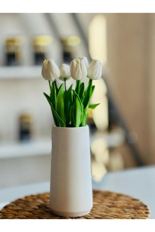 Beyaz Vazo Ve 8'li Lüx Islak Lale Buketi
