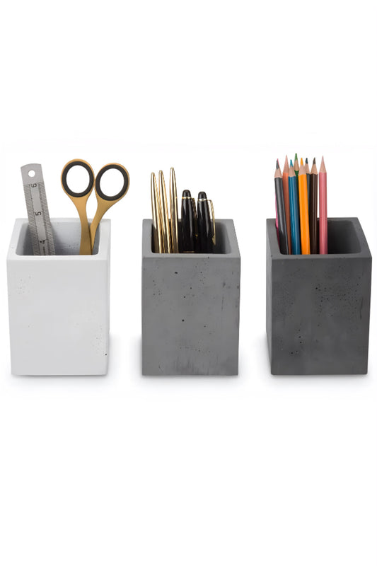 Beton Kalemlik 3’lü Set | Modern Dekoratif Organizer, Vazo, Saksı, Diş Fırçalık