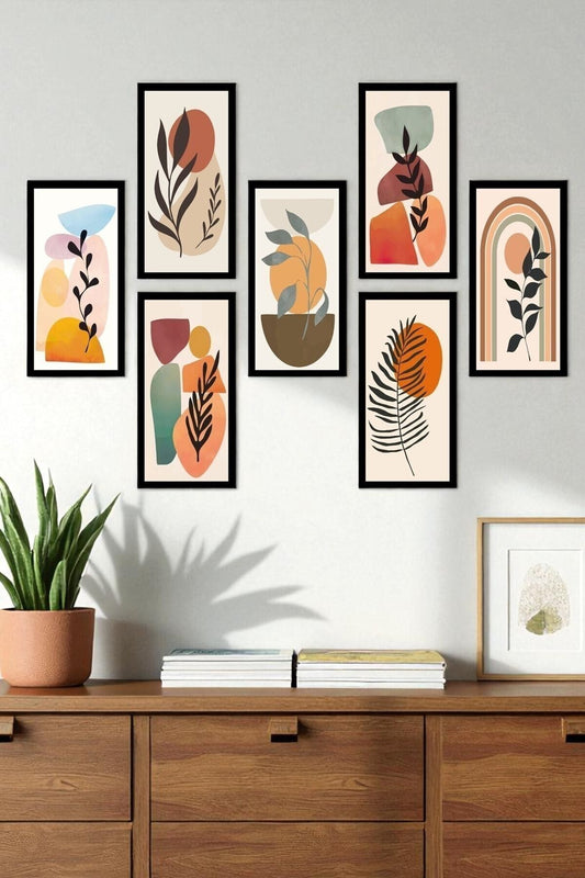 Bohem Yaprak Desenli MDF Tablo Seti 7 Parça | Ev ve Ofis Duvar Dekorasyonu
