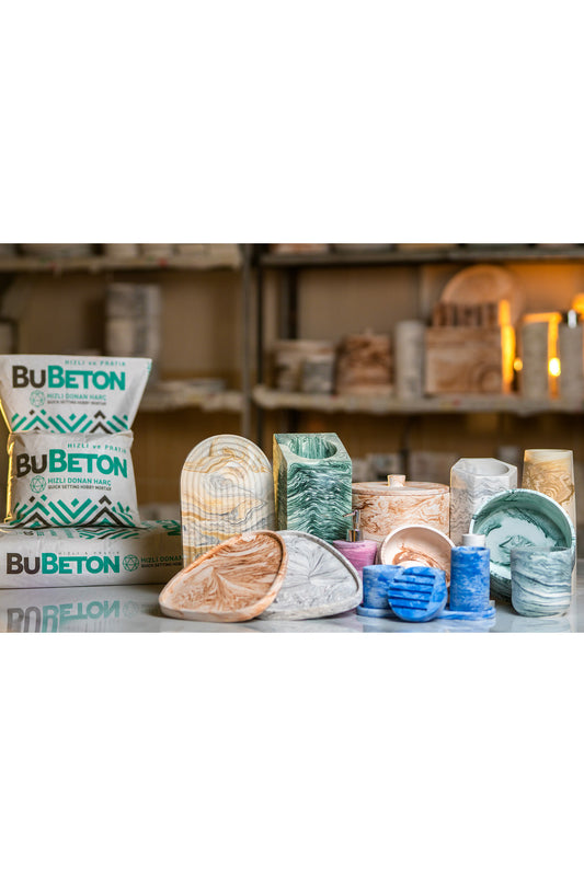 BuBeton Profesyonel Beton Harcı Hızlı Donan Premium Taş Tozu Saksı Döküm Hobi Harcı Beyaz 1 Kg