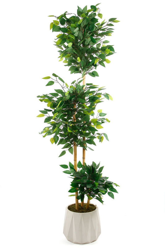 Beton Saksıda El Yapımı Bambu Gövdeli Yapay Benjamin Ağacı