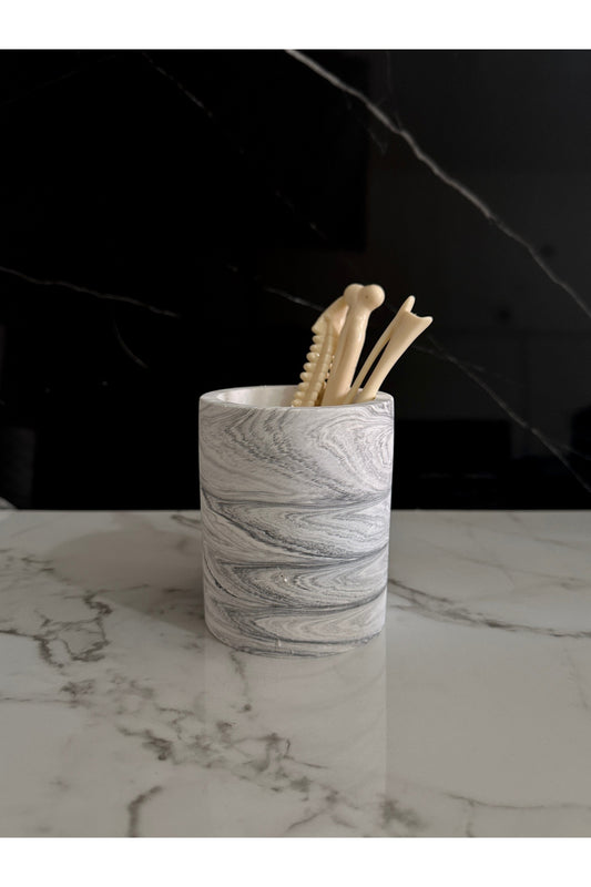 Beton Kalemlik Ofis Masaüstü Dekoratif Kalem Kutusu El Yapımı Silindir Minik Beton Obje Diş Fırçalık
