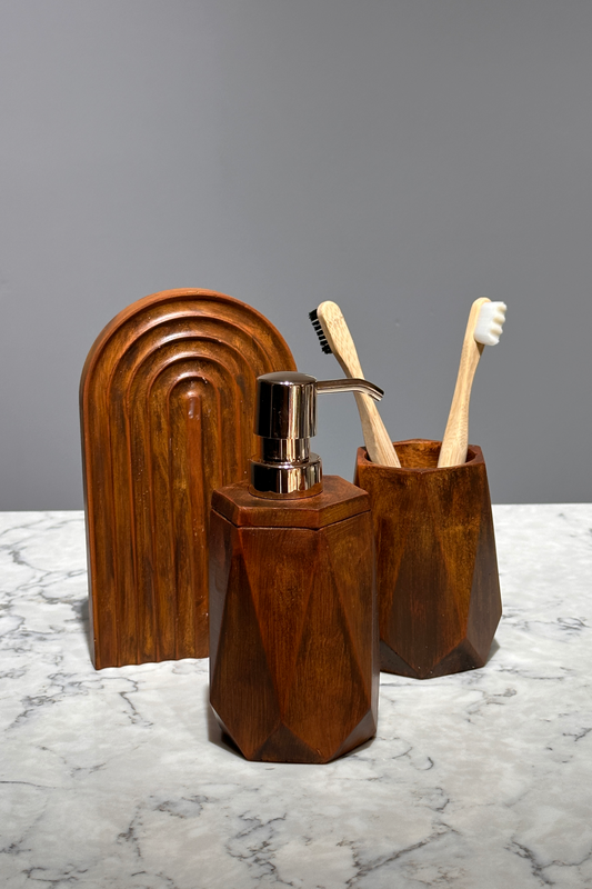 Woodart Serisi Ahşap Görünüm Beton Diş Fırçalık Set