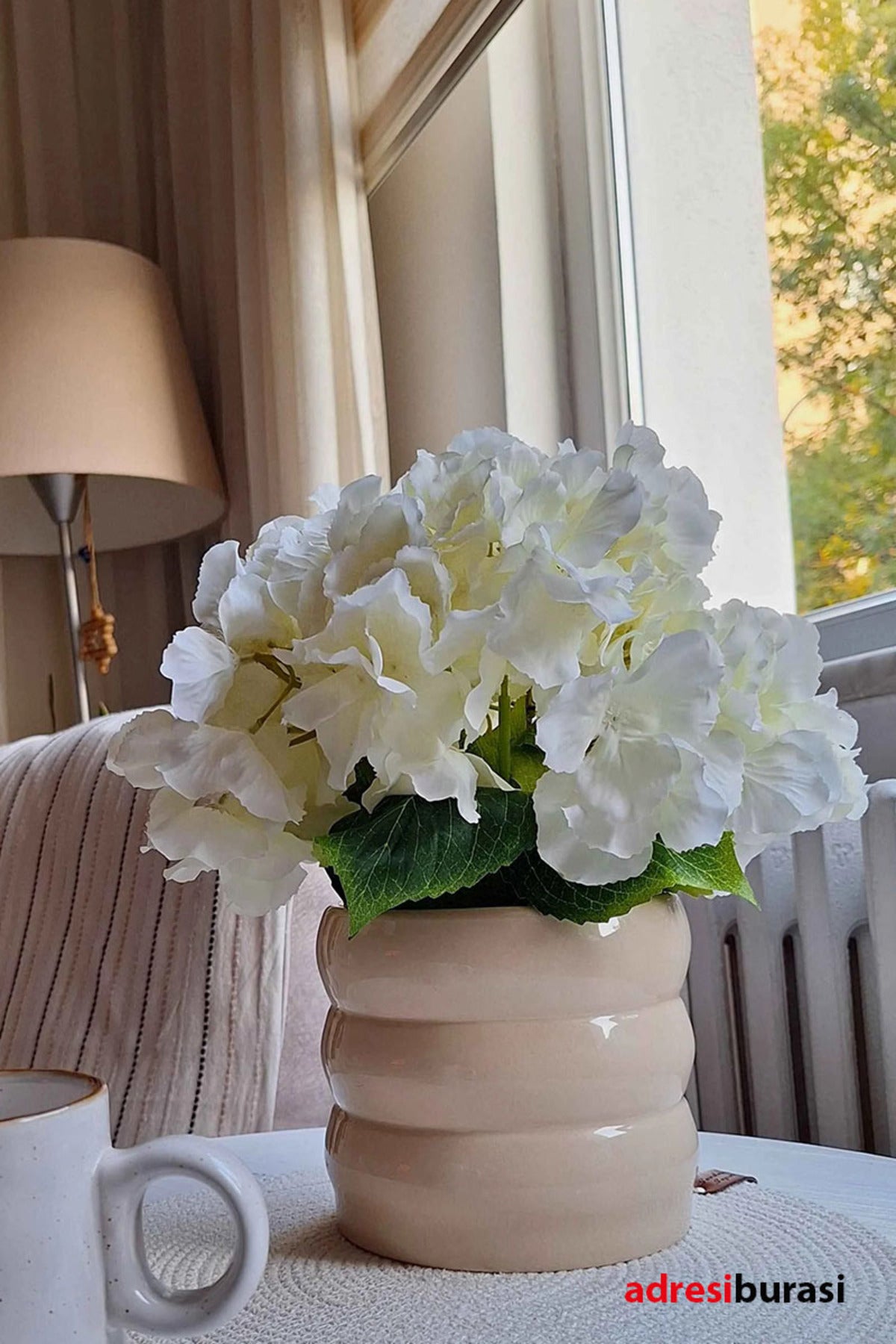 Adresiyapayçiçek Yapay Çiçek 5 Dal Lux Ortanca Demeti Ekru – Yapay Çiçek Dekor, Masa Süsü, Fon