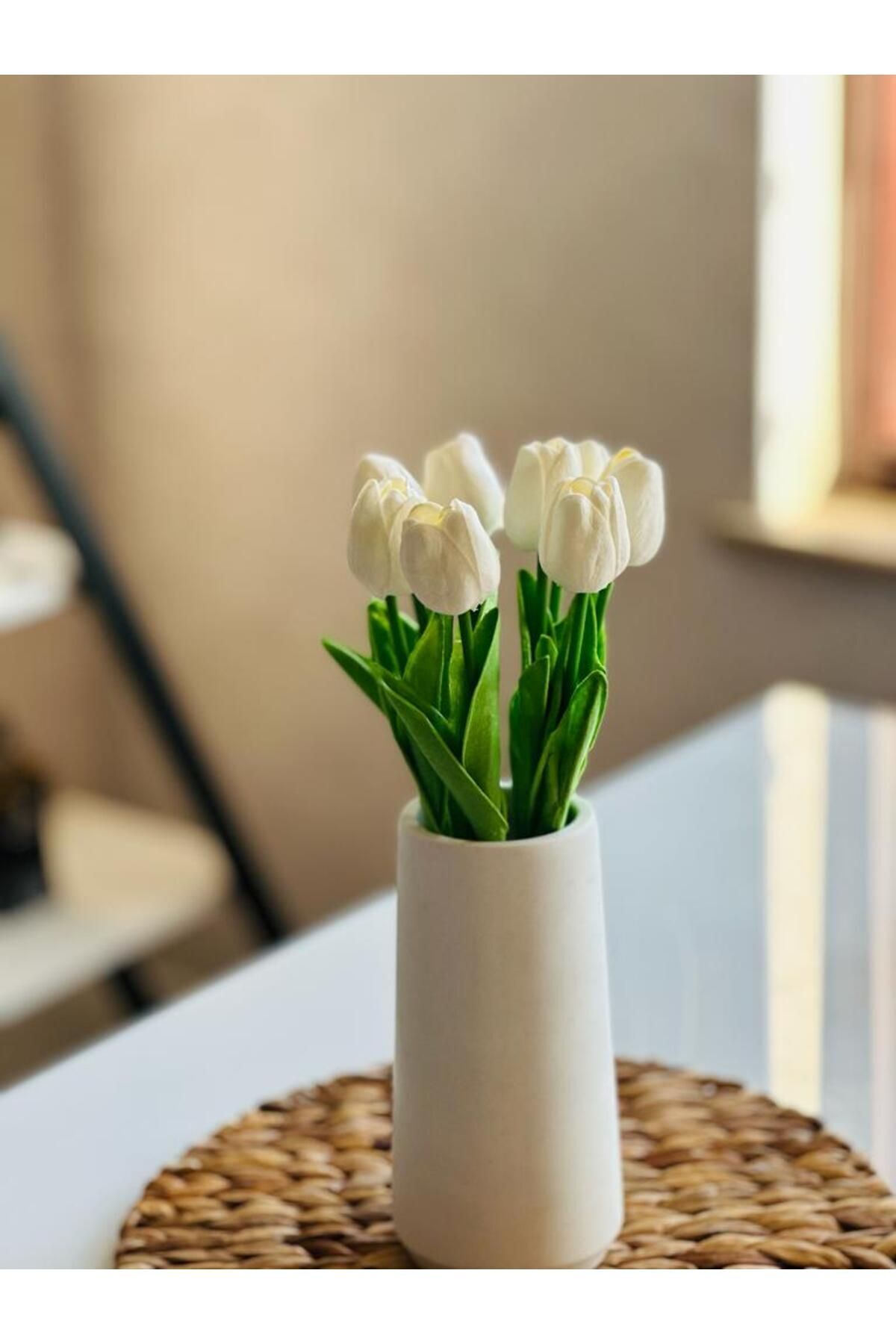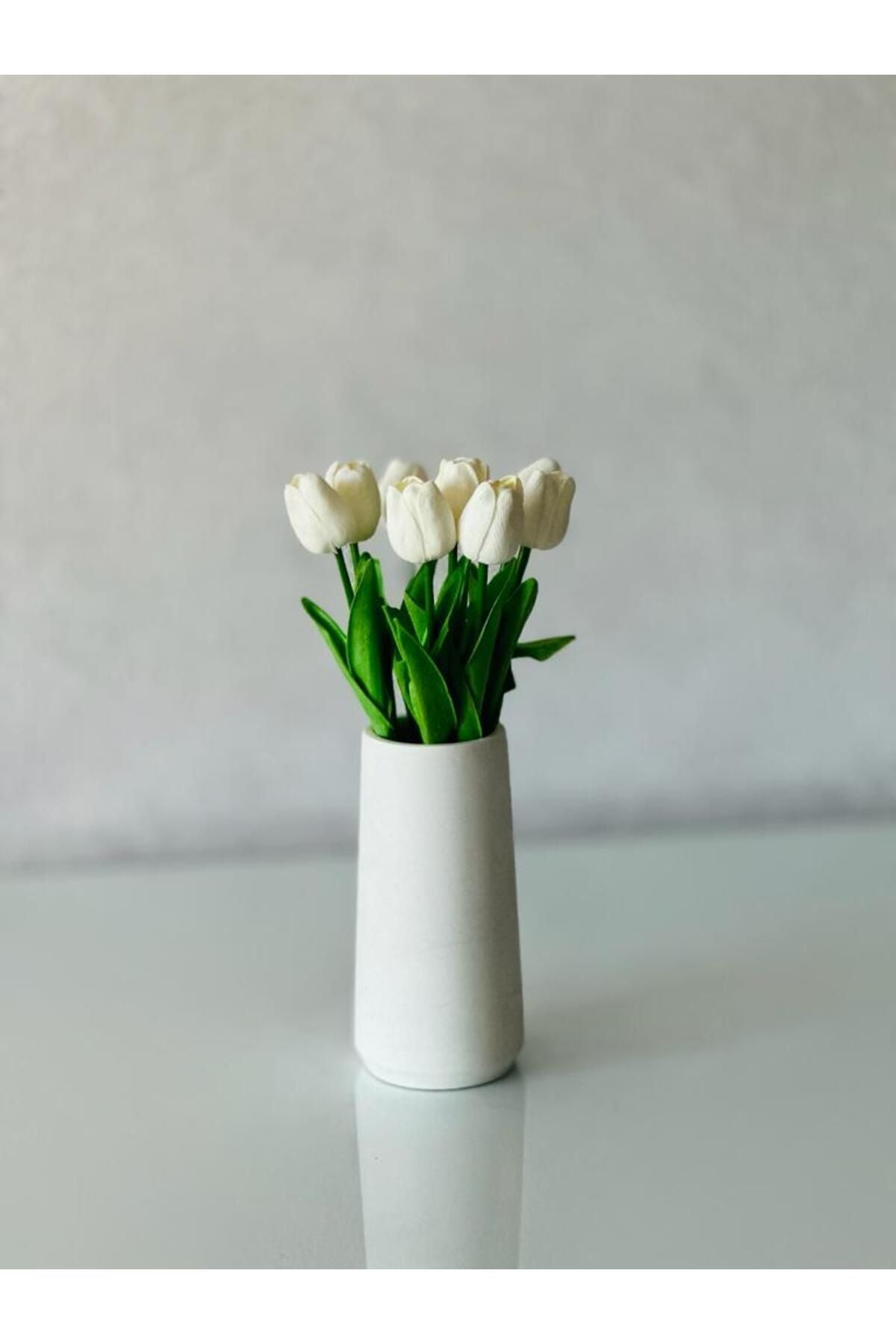 Beyaz Vazo Ve 8'li Lüx Islak Lale Buketi