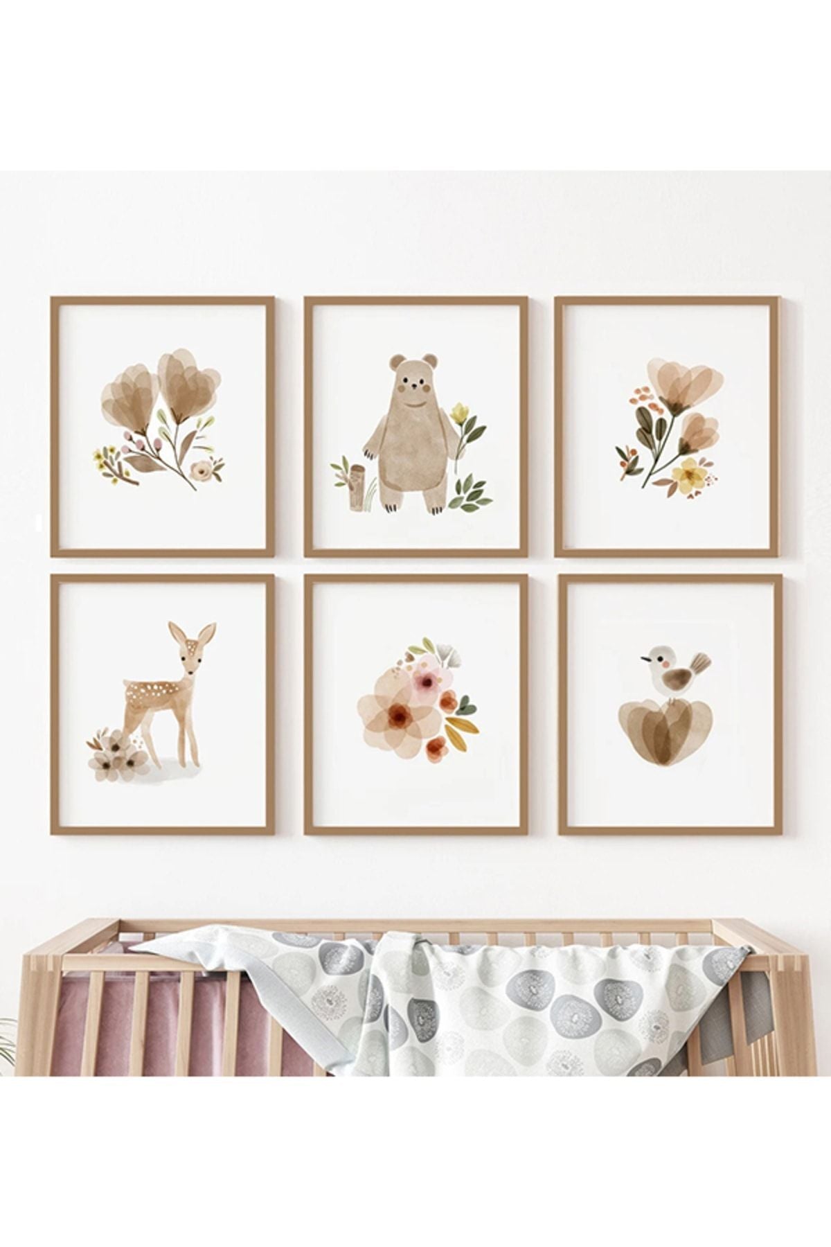 Bohem Tarz Bebek Hayvanlar Temalı Çocuk Odası 15x21 6'lı Tablo Set