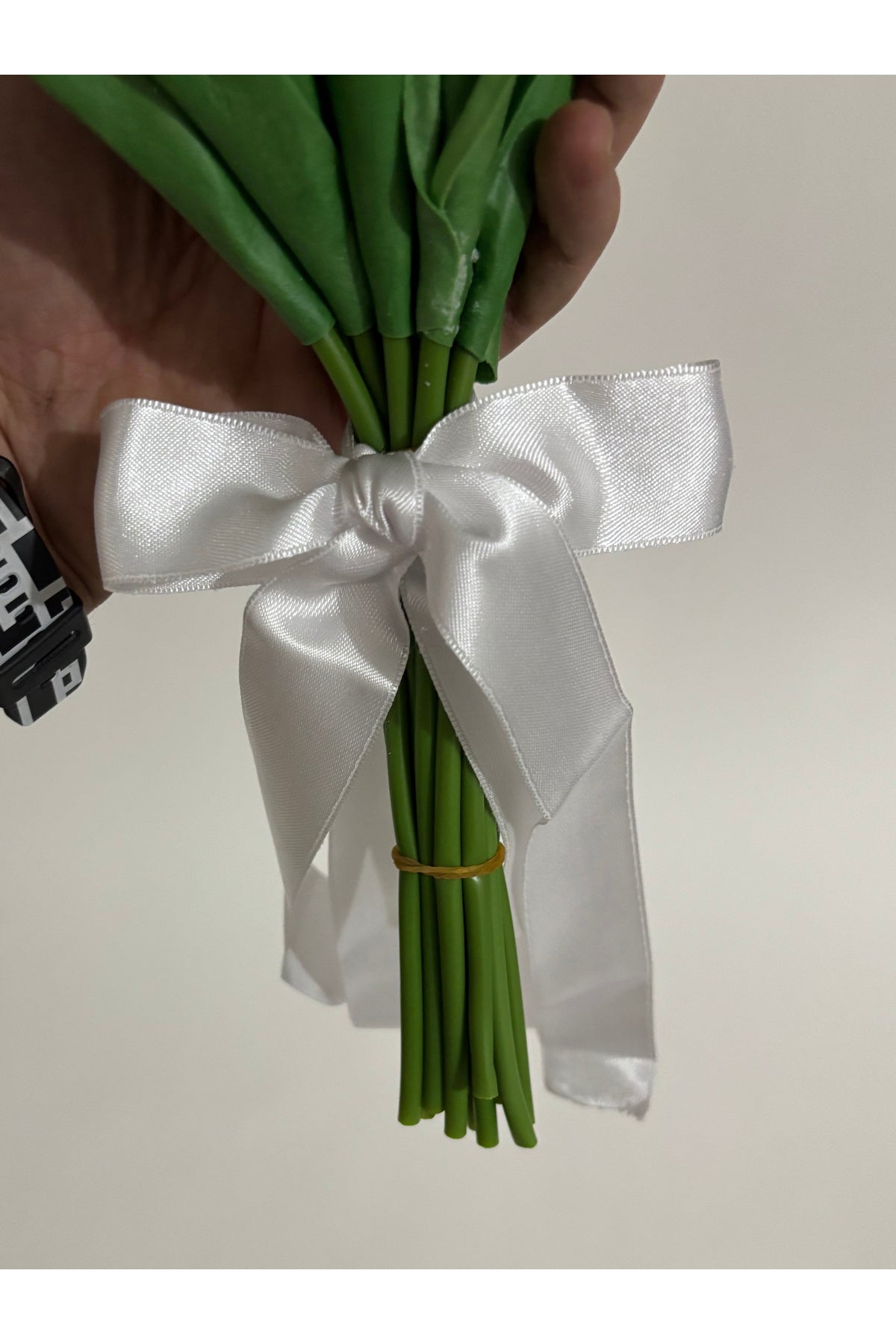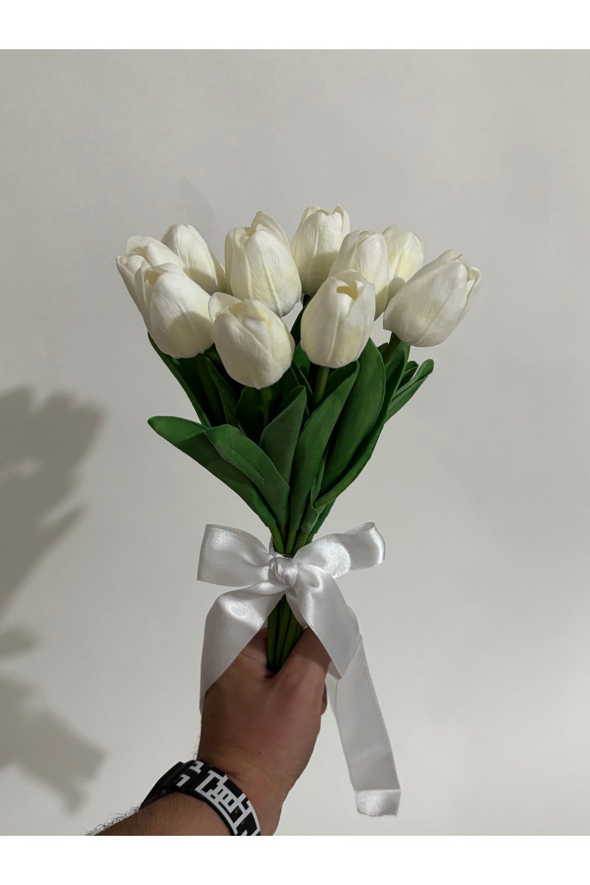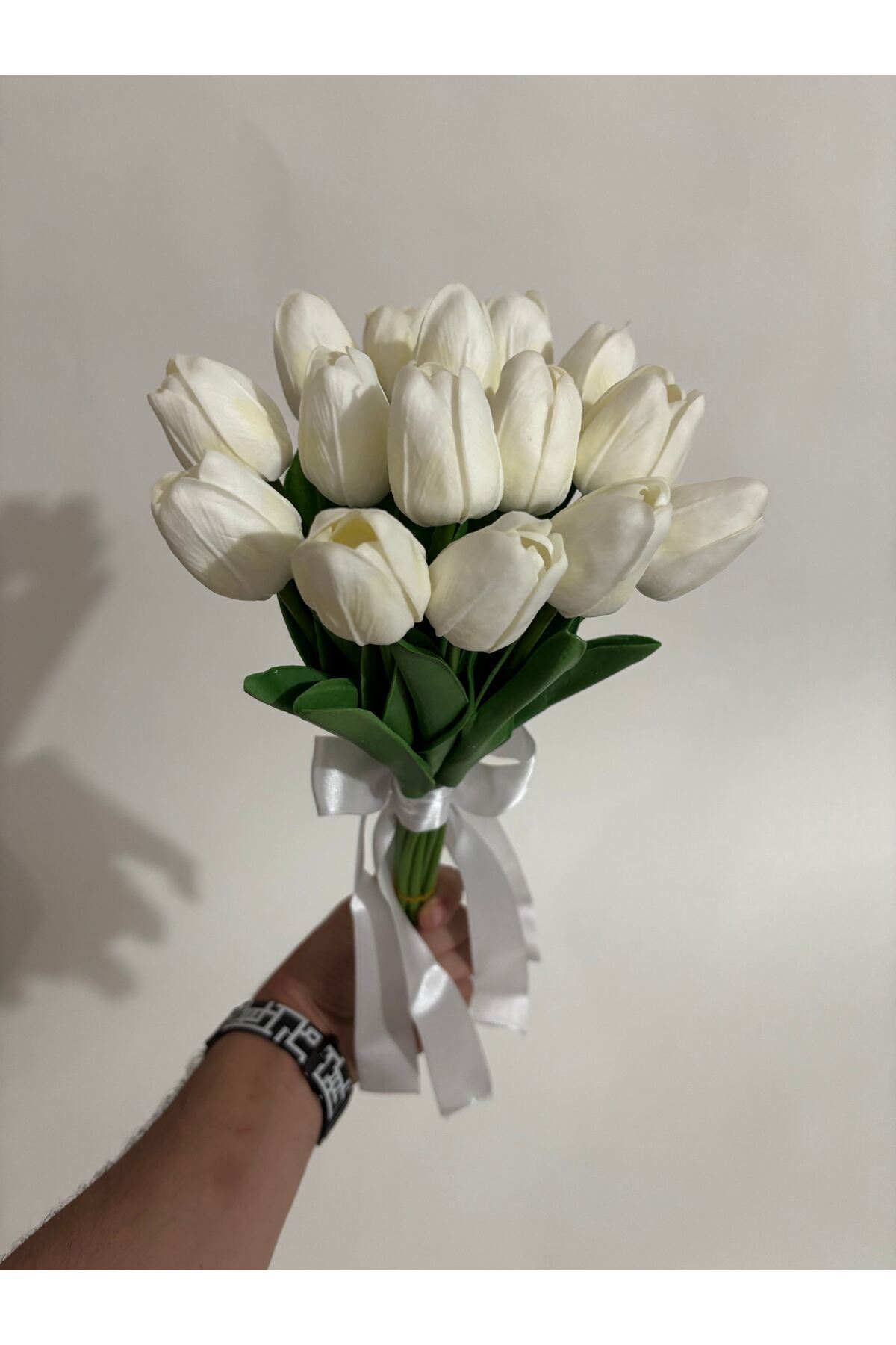 - Özel günlerinizde şıklığınızı tamamlayacak, gerçekçi dokusuyla dikkat çeken yapay çiçek ıslak lale demeti.; - Düğün ve diğer kutlamalarda kullanmak üzere ideal boyutta tasarlanmıştır; hem gelin çiçeği olarak hem de damat yaka çiçeği olarak tercih edilebilir.; - Islak görünümlü yapısı sayesinde doğal güzellikteki lalelerin estetiğini evinizin her köşesine taşıyabilirsiniz.; - Bakımı oldukça basittir; nemli bir bez ile silerek temiz tutabilirsiniz, böylece uzun süre ilk günkü gibi kalır.; - Ürün yüksekliği yaklaşık 35-40 cm\' dir.