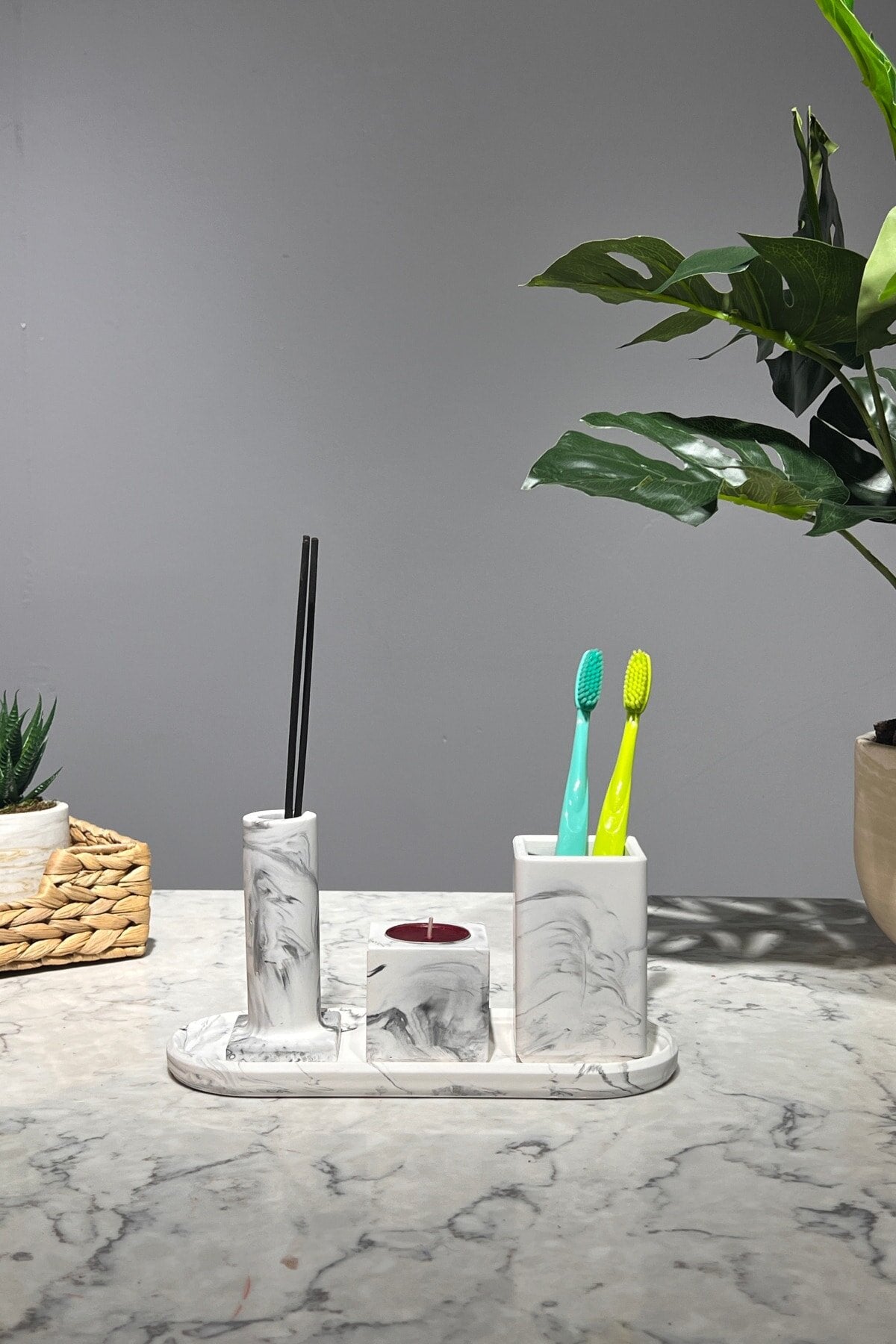betonmall Marble Serisi Diş Fırçalık Banyo Seti