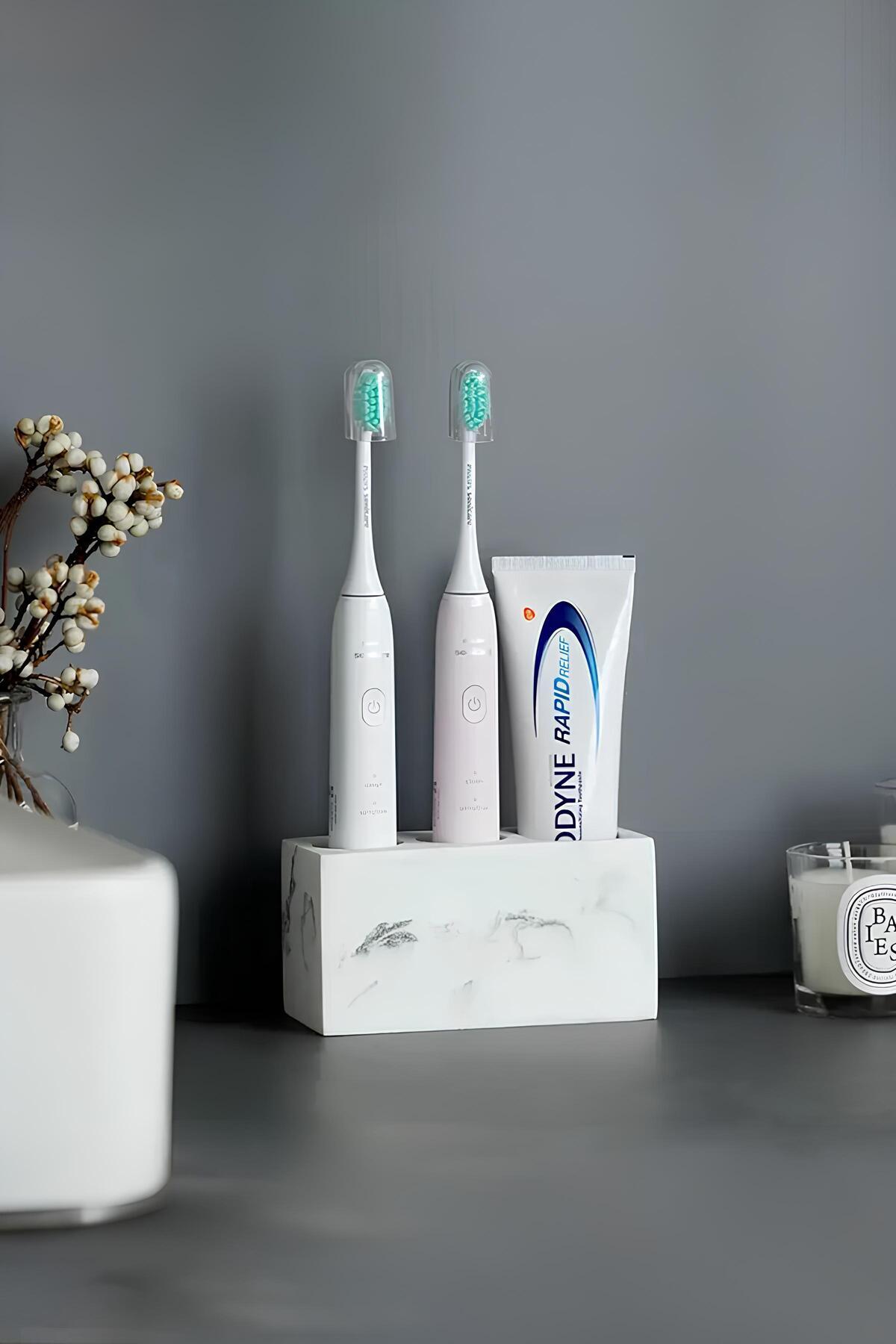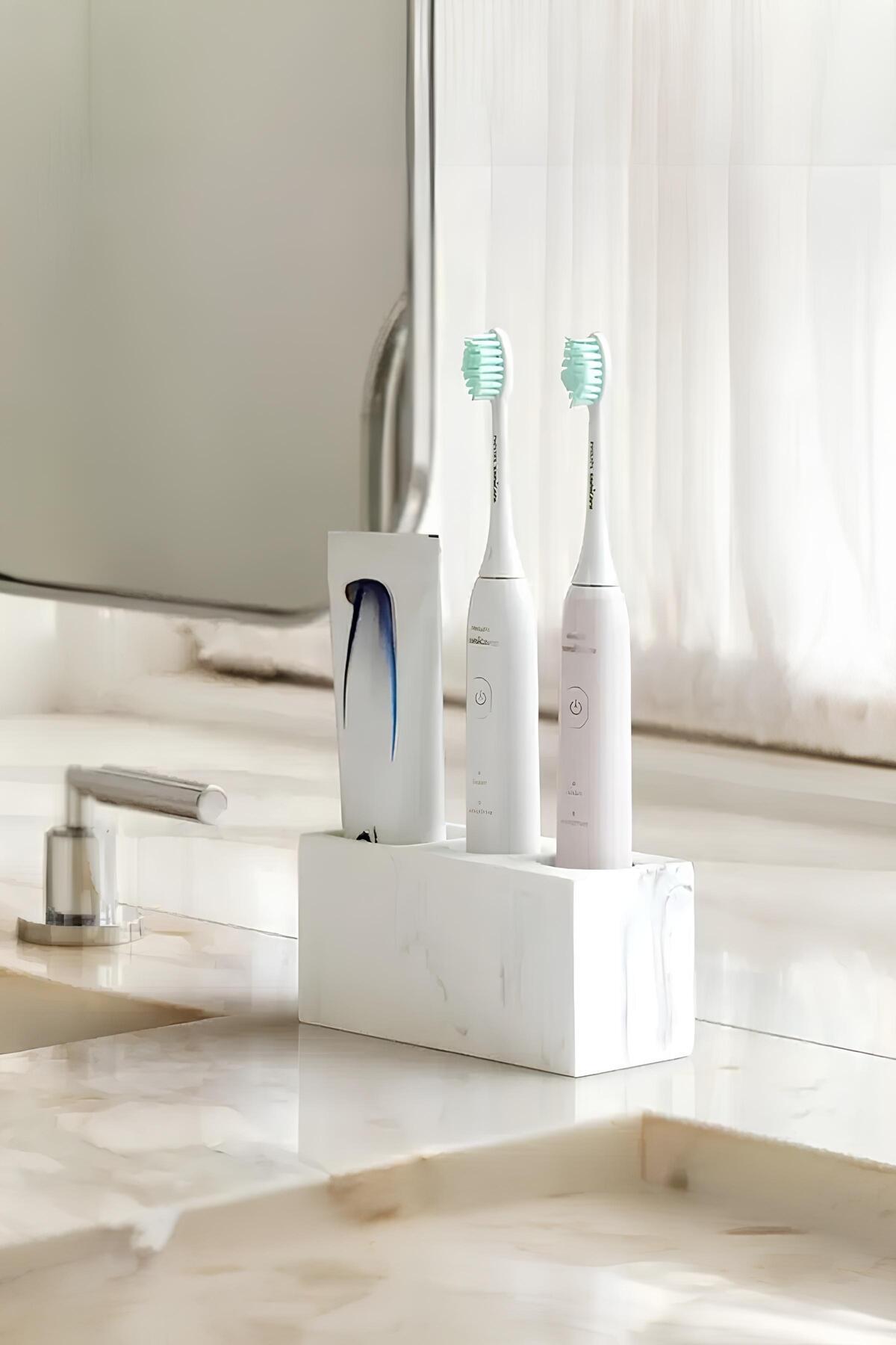 Modern Beton Diş Fırçalık | Elektrikli Fırça ve Macun Standı Banyo Organizeri