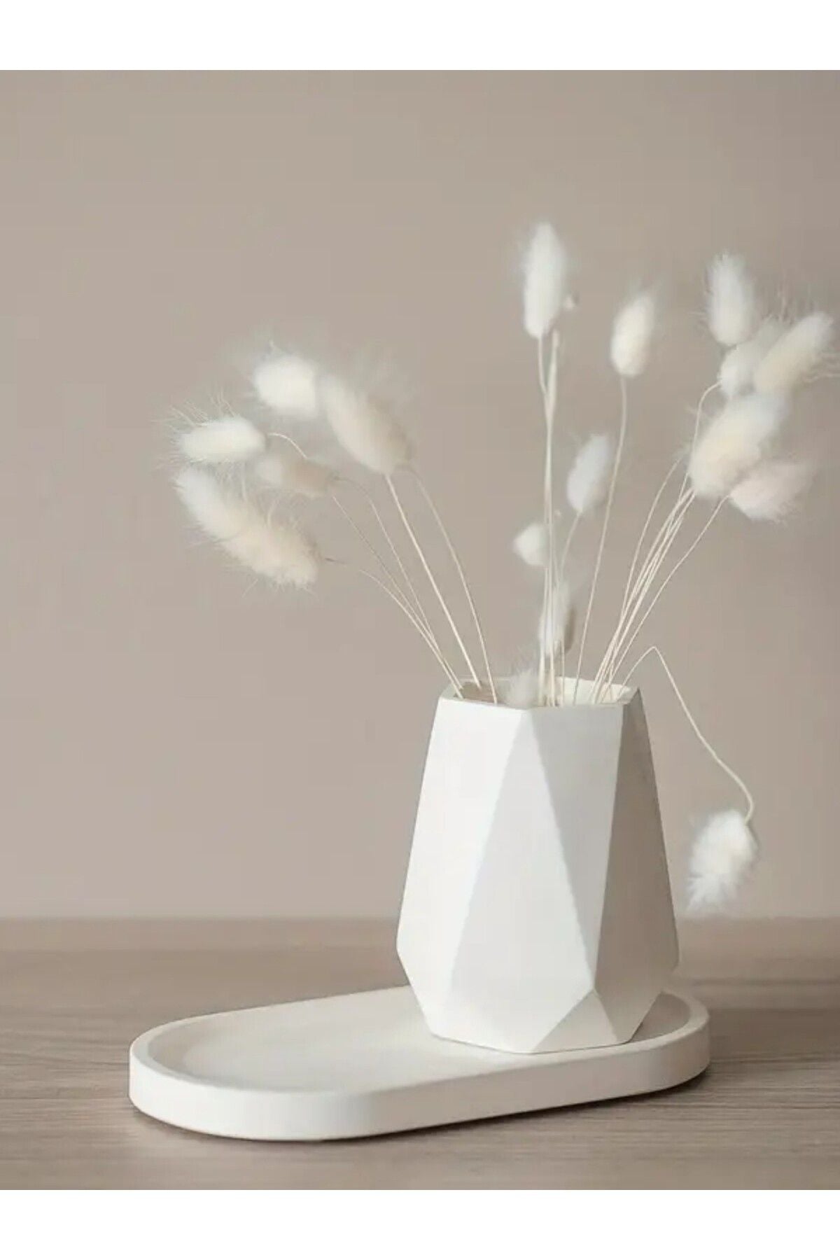 Modern Dekoratif Çok Amaçlı Tepsi Tabanlı Geometrik Beyaz Vazo / Saksı / Kalemlik / Diş Fırçalık