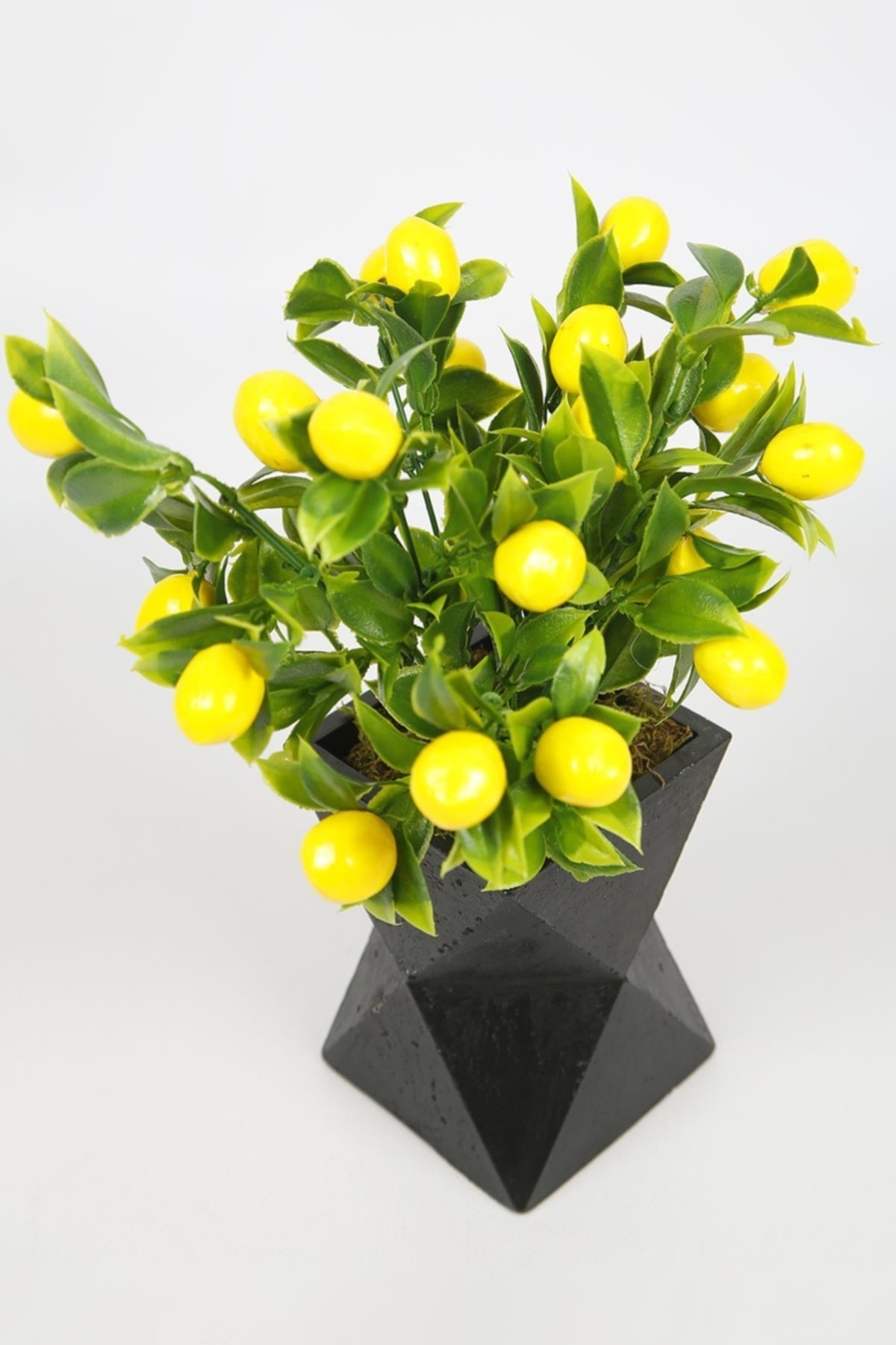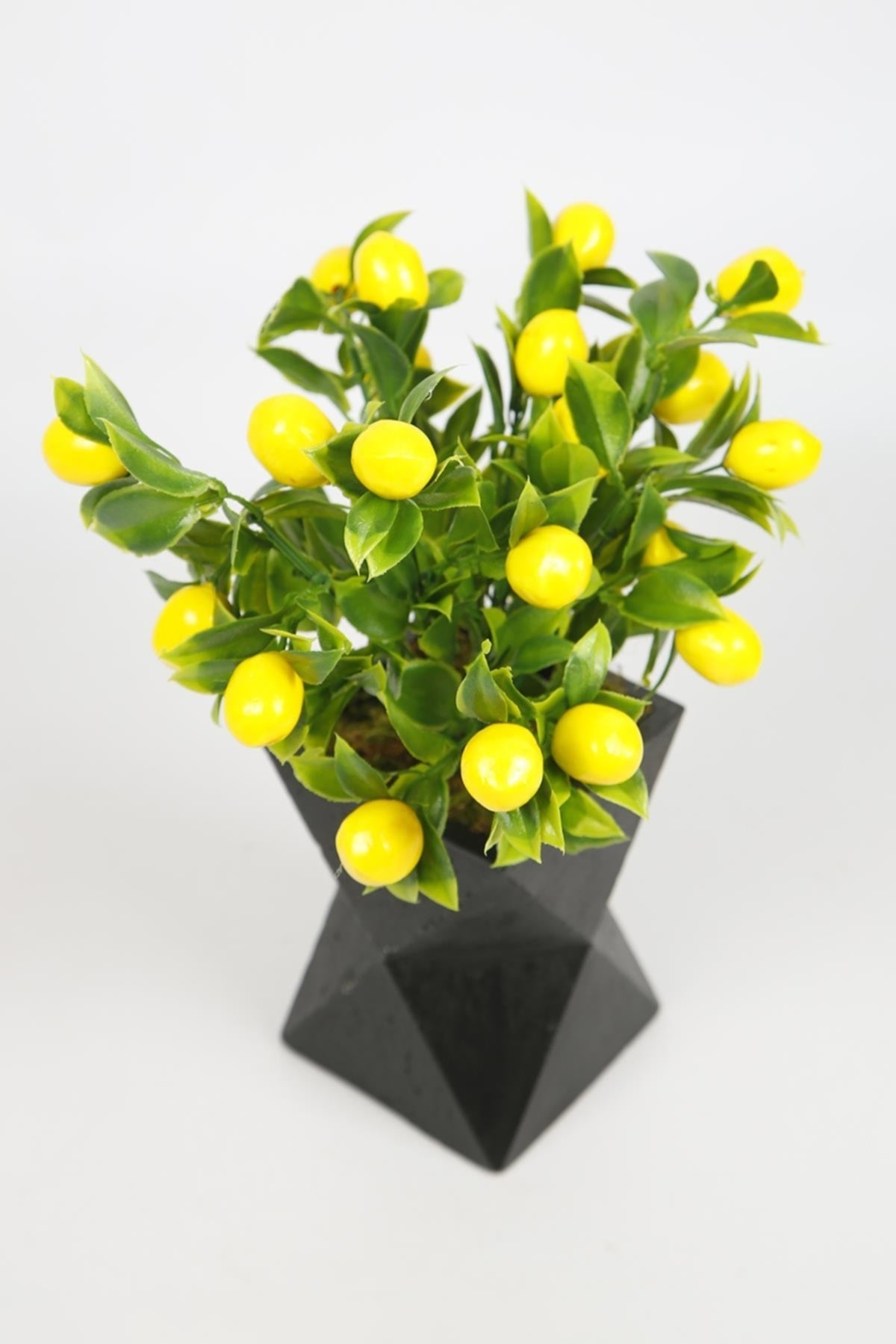 Siyah Beton Saksıda Limon Ağacı Yapay Ağaç Vazoda Yapay Bitki