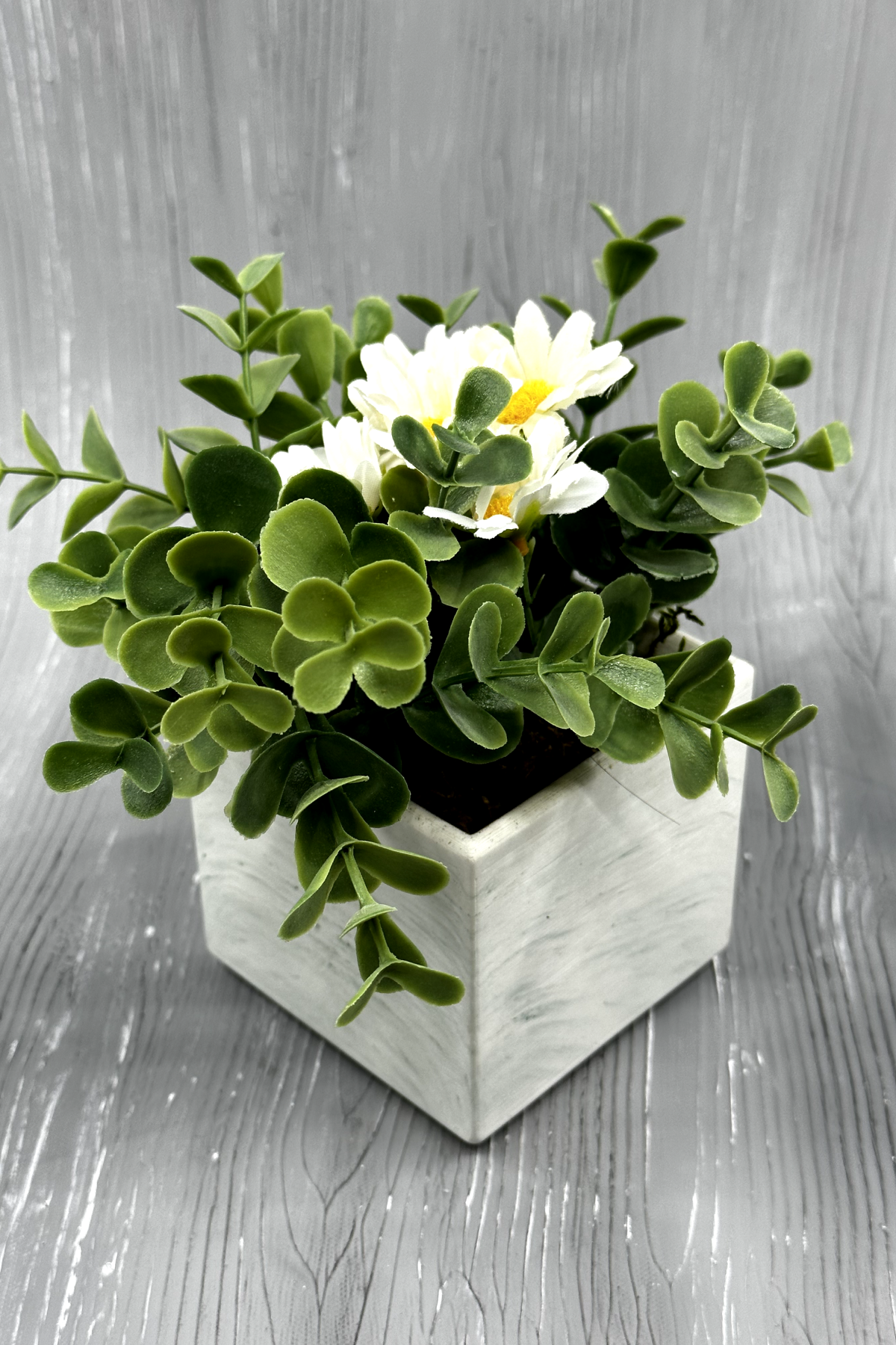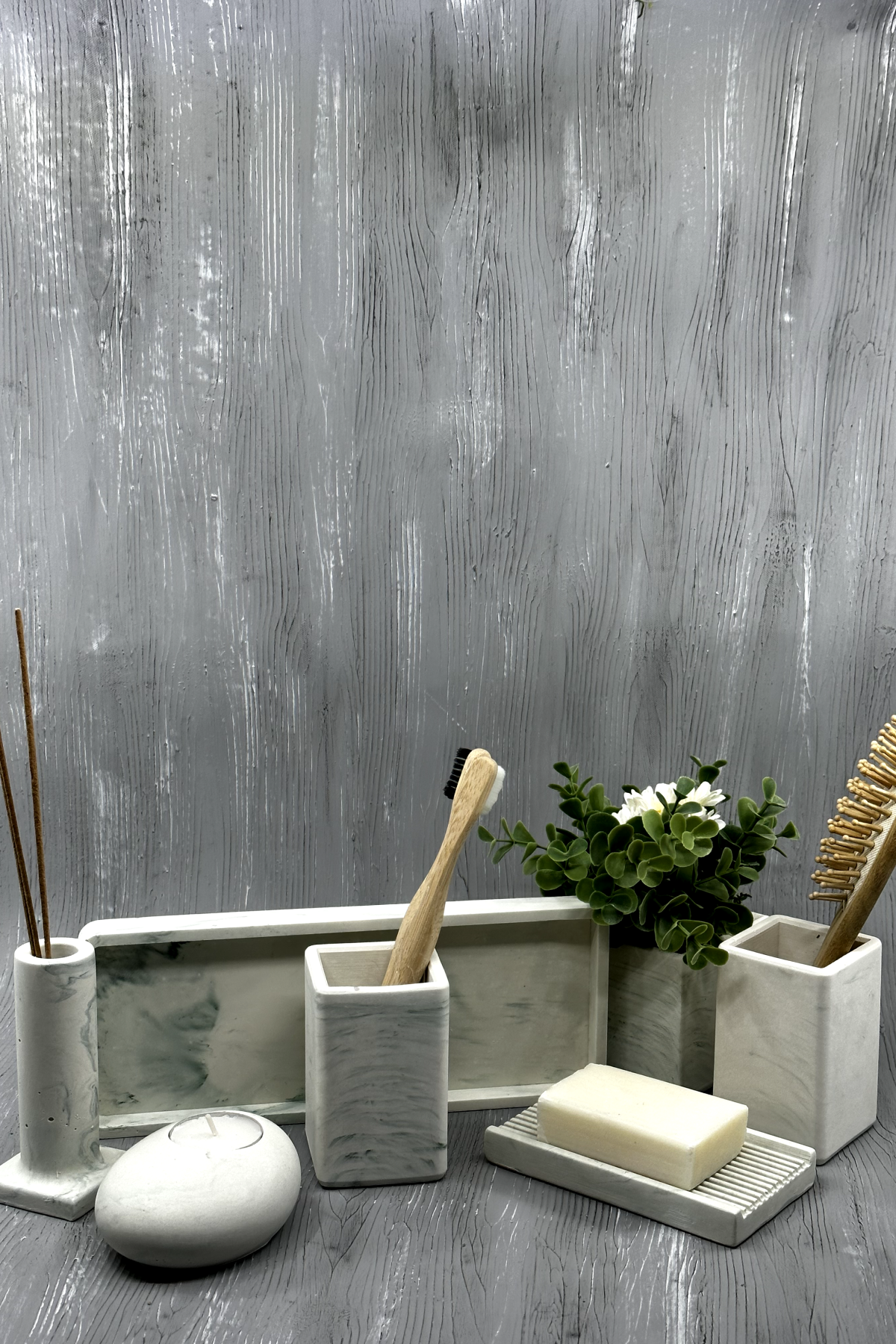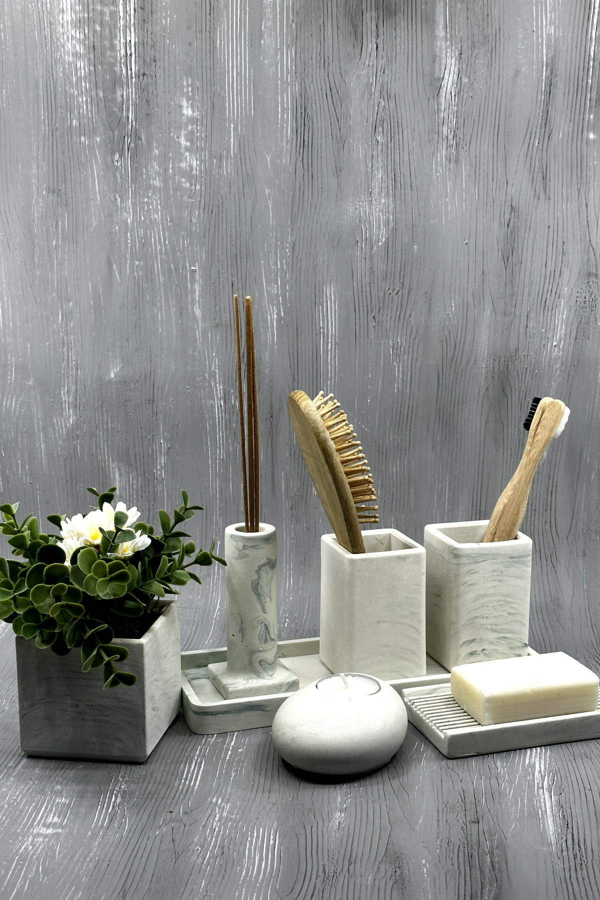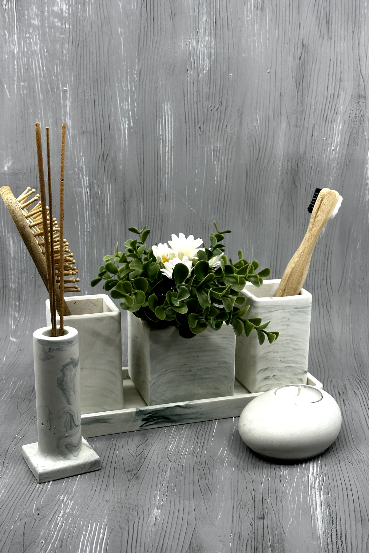 Yapay Çiçekli Beton Banyo Seti 7 parça olarak gelir