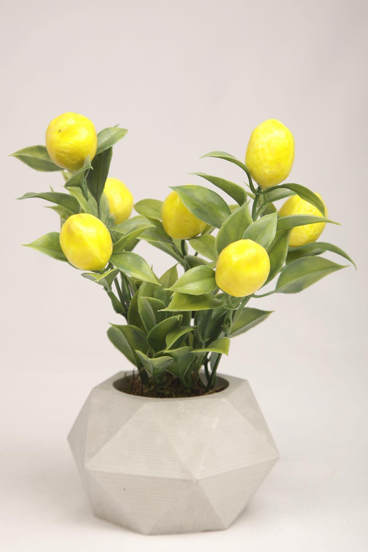 Yapay Limon Ağacı Beton Saksıda Dekoratif Yapay Çiçek Ve Bitki Tanzimi